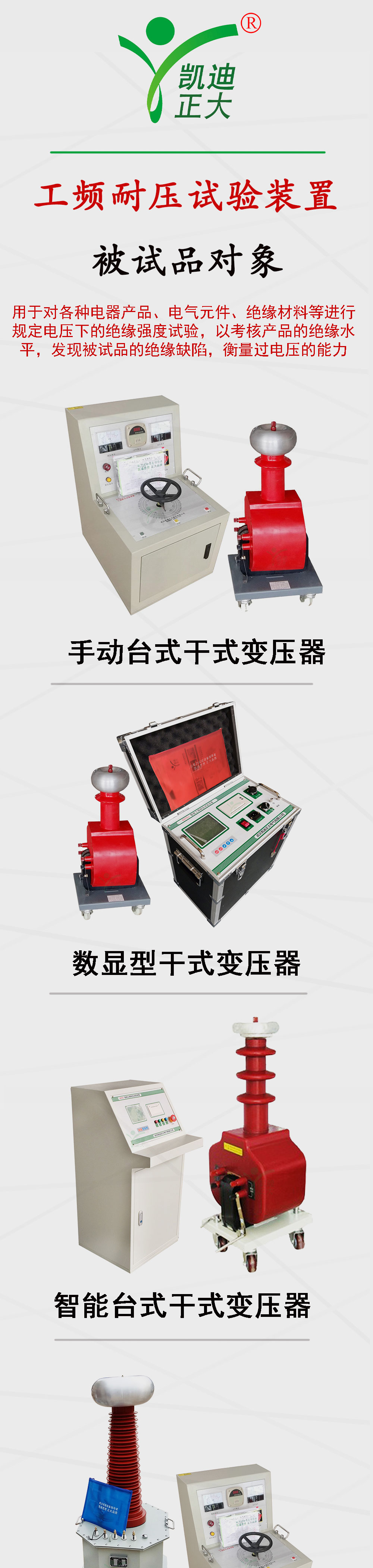 產品編號: 2021056 KDGTB 工頻耐壓試驗裝置 KDGTB工頻耐壓試驗裝置是鑒定電力設備絕緣強度的嚴格、有效和直接的方法。它能檢查出那些危險性較大的集中缺陷,對判斷電力設備能否繼續參加運行具有決定性作用,是保證設備絕緣水平、避免發生絕緣事故的重要手段。 參考標準: DL/T 848.2-2018,DL/T 474.4-2018 人機對話鍵盤操作方式,智能化工作過程,可選自動方式和手動方式 實時顯示高壓電壓、高壓電流、低壓電壓、低壓電流,時間及耐壓結果 具有回零檢測功能,回零確定后才可進行試驗,安全可靠 產品說明書 檢定證書 標準及規程 產品概述 產品特點 詳細參數 相關信息:KDJS-6全自動絕緣靴(手套)耐壓試驗裝置 注: 關于產品購買、技術維護等服務,歡迎咨詢!在線咨詢