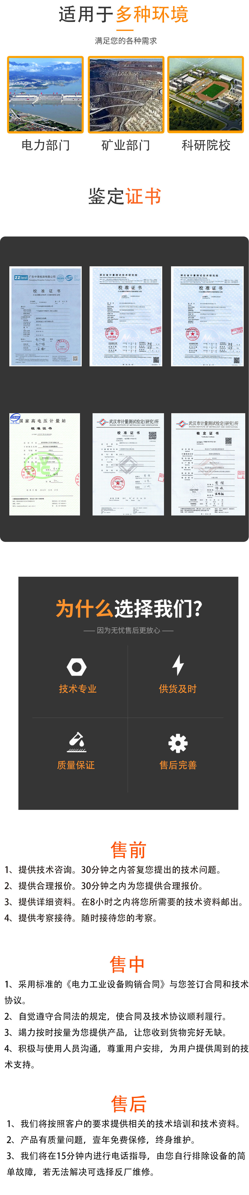 7.測試故障安全、迅速、準(zhǔn)確。儀器采用低壓脈沖法和高壓閃絡(luò)法探測,可測試電纜的各種故障,尤其對電纜的閃絡(luò)及高阻故障可無需燒穿而直接測試。如配備聲測法定點(diǎn)儀,可準(zhǔn)確測定故障的精確位置。