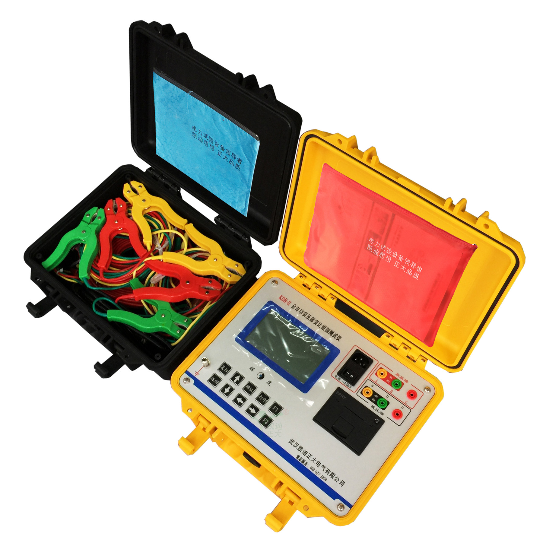 2、功能強:既可進行單相測量,又可實現三相繞組的自動測試,單相、三相均可測量極性,相角,一次完成測量AB、BC、CA三相的變比值、相角值、誤差、分接位置、分接值等參數,可自動識別組號。