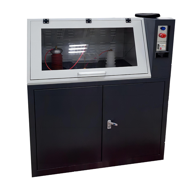 此儀器為具有防輻射功能,儀器試驗門處為透明絕緣玻璃中夾有屏蔽網,在試驗過程中, 擊穿瞬間會產生大的電流,同時對人身體有輻射危害,我