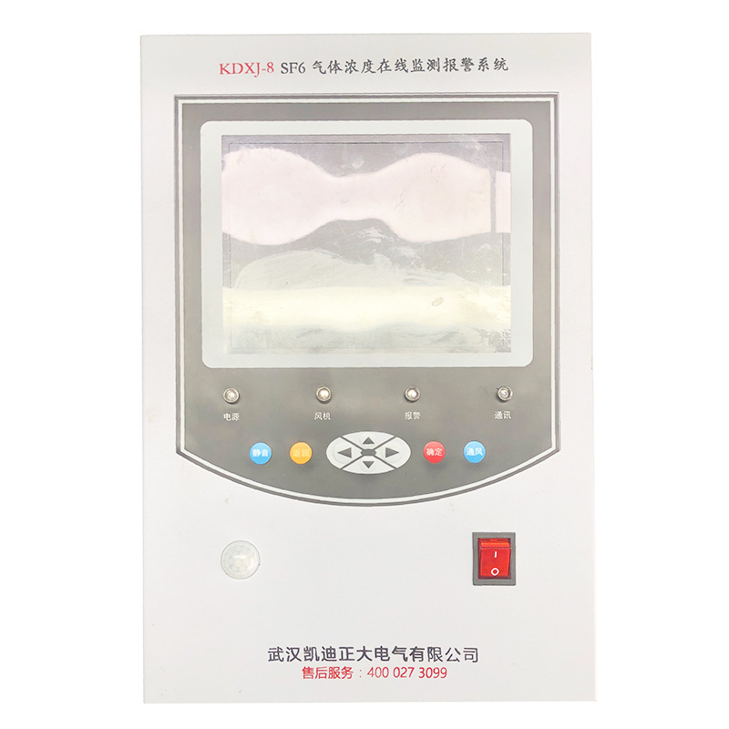 KDXJ-8 SF6氣體泄漏報警系統主機接收采集器的傳送的數據,同步顯示,并進行分析處理,與固定標準參數進行對比后作出判斷。同時主機能與上位PC機進行通信,接受PC發來的控制命令或者把數據上傳到PC便于遙測、遙控以及存儲。當采集數據超過設定限值時,主機自動運行各項控制程序,啟動外圍設備進行工作,包括聲光、語音報警、通風等。另外主機可以自行對環境的溫濕度進行測量,以便對相關數據補償、修正。