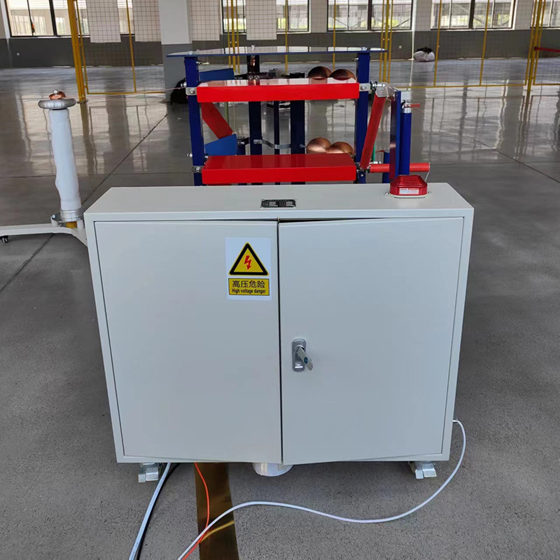 采用電磁鐵自動接地機構通過一個接地電阻將發生器的第一級電容接地。