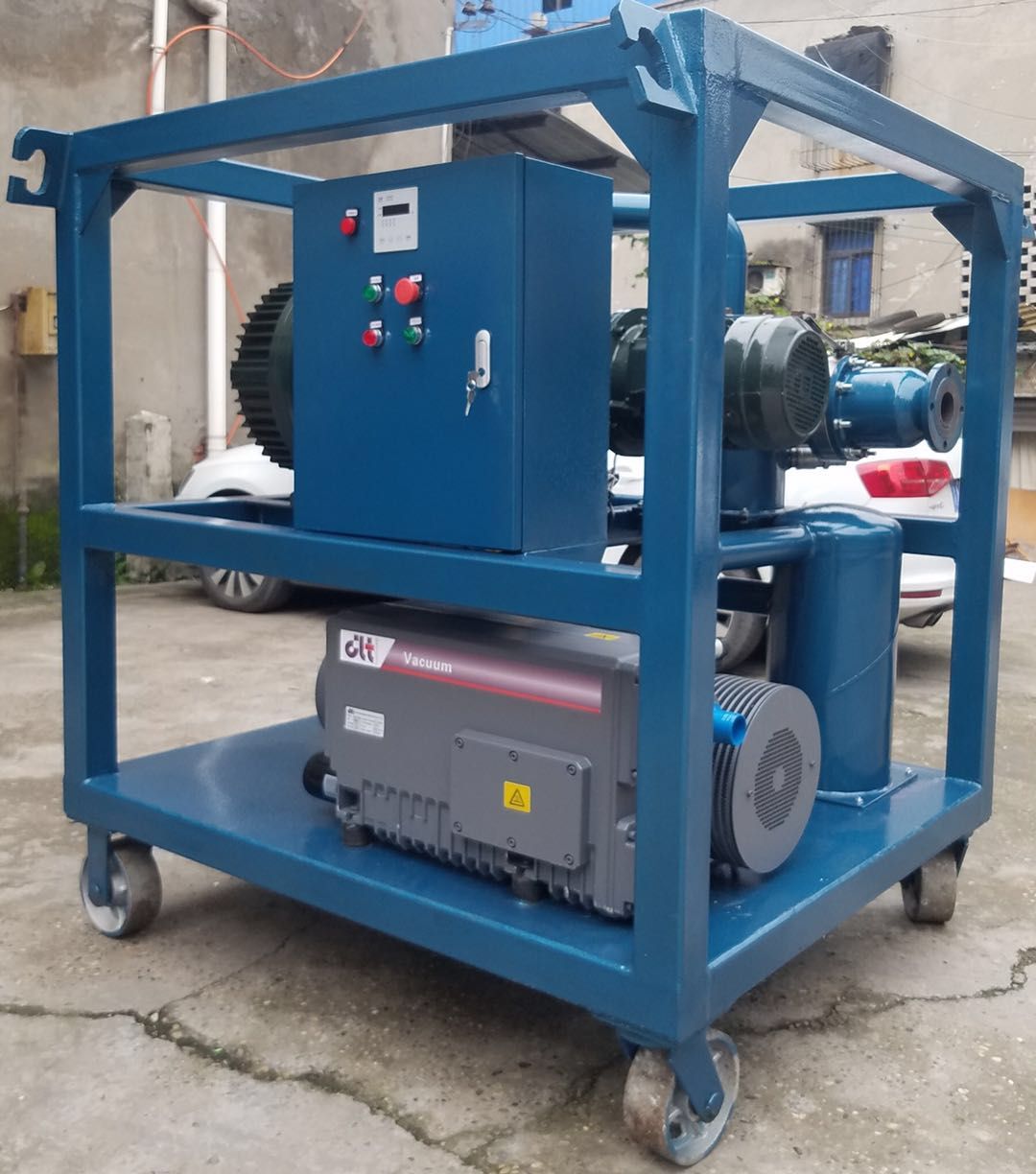 SF6氣體抽真空充氣裝置:KDQC-33抽氣速率≥45L/s;風冷手推移動式,前級真空泵(抽氣速率(54m3/h;)極限真空10(裝置極限)(Pa)功率2.2kW;)羅茨真空泵(抽氣速率70L/s;極限真空≤10Pa;功率0.75kW);電源三相五線制 3Φ 380V;總功率≤3kW;噪聲≤60dB(A);重量200kg;尺寸(長*寬*高)82 cm *55 cm *115cm