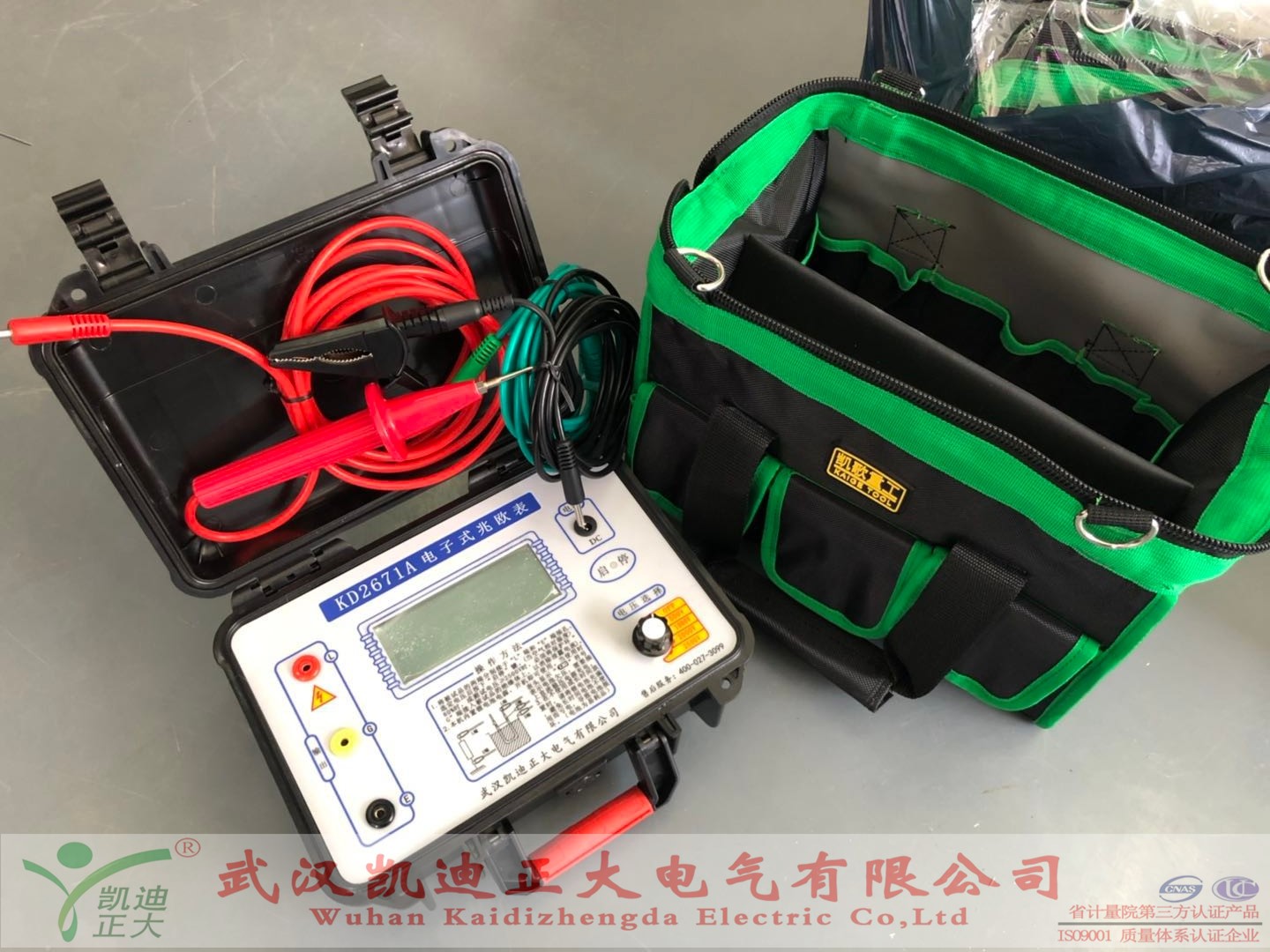 KD2671A電子式兆歐表又稱:數字式兆歐表、數字搖表、絕緣電阻測試儀、數顯兆歐表等,采用我司最新研發的線路板測試原理,具有數據穩定、精度高、短路電流大等特點,輸出測試電壓DC250V、1000V、2000V、2500V多種選擇。KD2671系列絕緣電阻測試儀可定制,選擇性更強。采用環保綠色的軍工便攜袋、多種裝機夾層、分布人性化。高壓測試夾采用可拆卸式:測試棒、測試夾、測試勾,滿足不同測試現場。