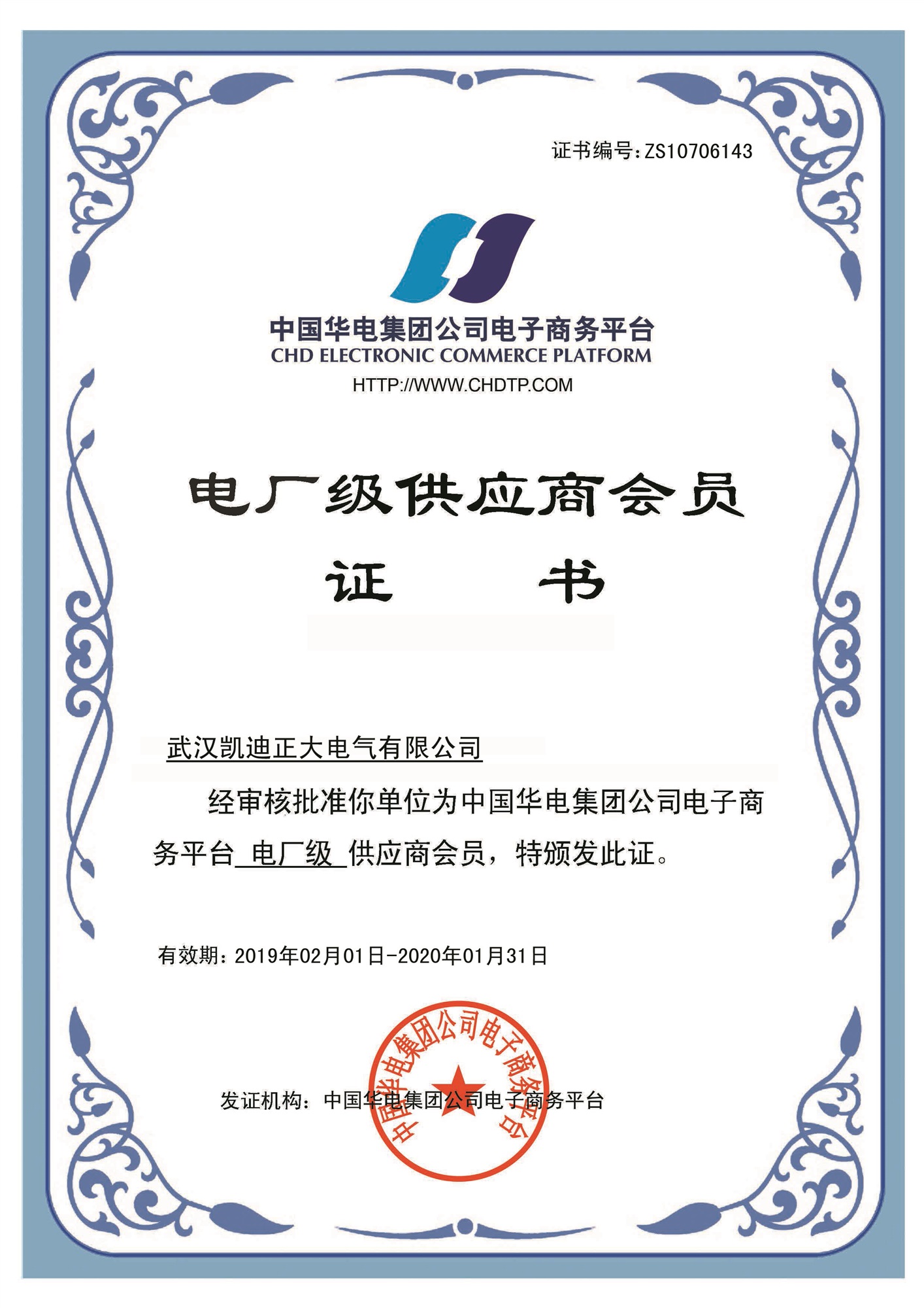 賀凱迪正大公司獲得中國華電集團電廠級供應商會員