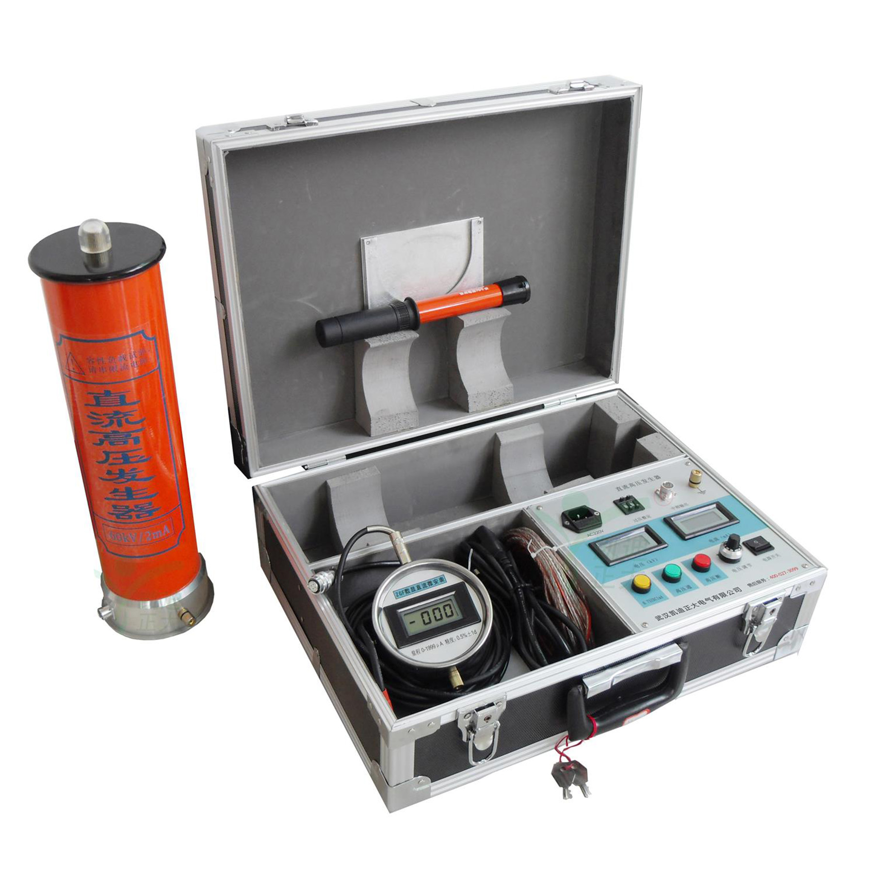 9、倍壓筒采用美國技術研制生產,中頻變壓器經有關專家特殊設計、體積小,容量大,過載能力強,便于現場作業試驗。