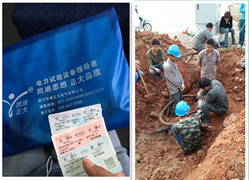 李工用KD-216A高壓電纜故障檢測儀、KDYDJ工頻耐壓操作箱、油浸式試驗變壓器、脈沖高壓電容、KD305數(shù)顯絕緣電阻測試儀設備,得于精湛的技術,良好的電力檢測設備,終于在6月23日中午之前,將電纜故障就找到了。最后,柿莊南采氣廠的電力得以全線恢復。設備部張部長對我司的售后服務表示滿意,為用戶排憂解難給予贊美。