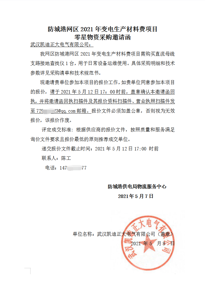 南網(wǎng)防城港網(wǎng)區(qū)2021年變電生產(chǎn)材料費(fèi)項(xiàng)目邀請(qǐng)函