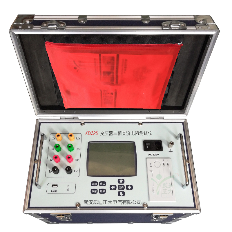 KDZR-10A變壓器直流電阻測試儀(以下簡稱直阻儀)是變壓器直流電阻測量的最新一代產品,是為測量大容量變壓器三相繞組直流電阻而優化設計的。可對變壓器的三相繞組直流電阻進行同時測試。采用雙電源結構,對有分接的變壓器YN聯接繞組,實現三相同時加電,測量系統采用獨立三通道電流采樣、獨立三通道電壓采樣,同時測量并顯示三相電阻值和三相不平衡率。對有載調壓變壓器可以不需要放電,直接調節分接開關,大大縮短工作時間,解決了電力變壓器各分接繞組直流電阻測試耗時長的問題測量時間是傳統單相測量的三分之一。直阻儀采用大屏幕液晶顯示器,全中文圖形界面,清晰直觀,操作非常簡單。并配備面板式打印機和大容量非易失性存儲器,可以方便的存儲和打印測量結果。測試數據穩定,快速,重復性好,是現場測量變壓器直流電阻的較好選擇。
