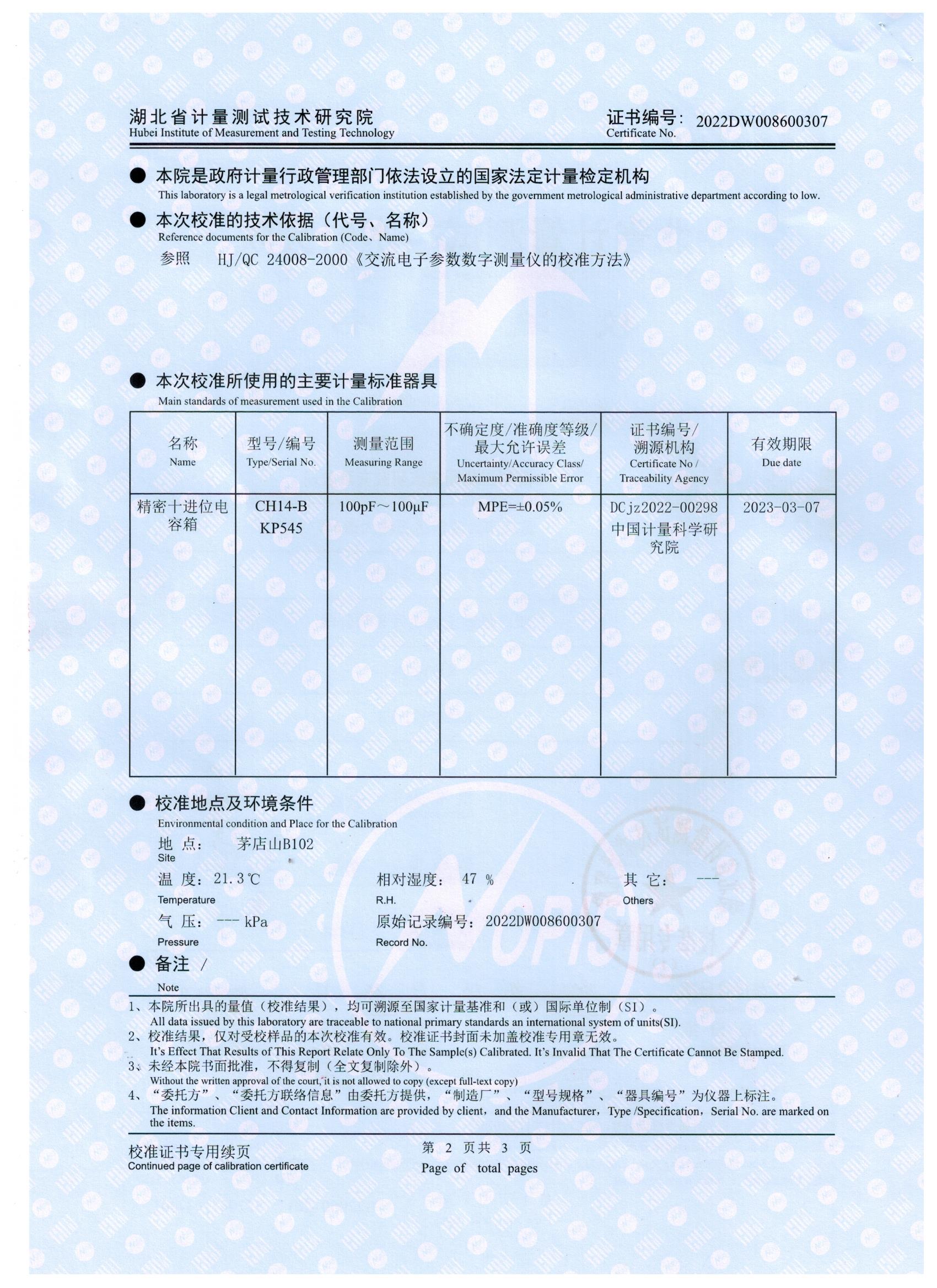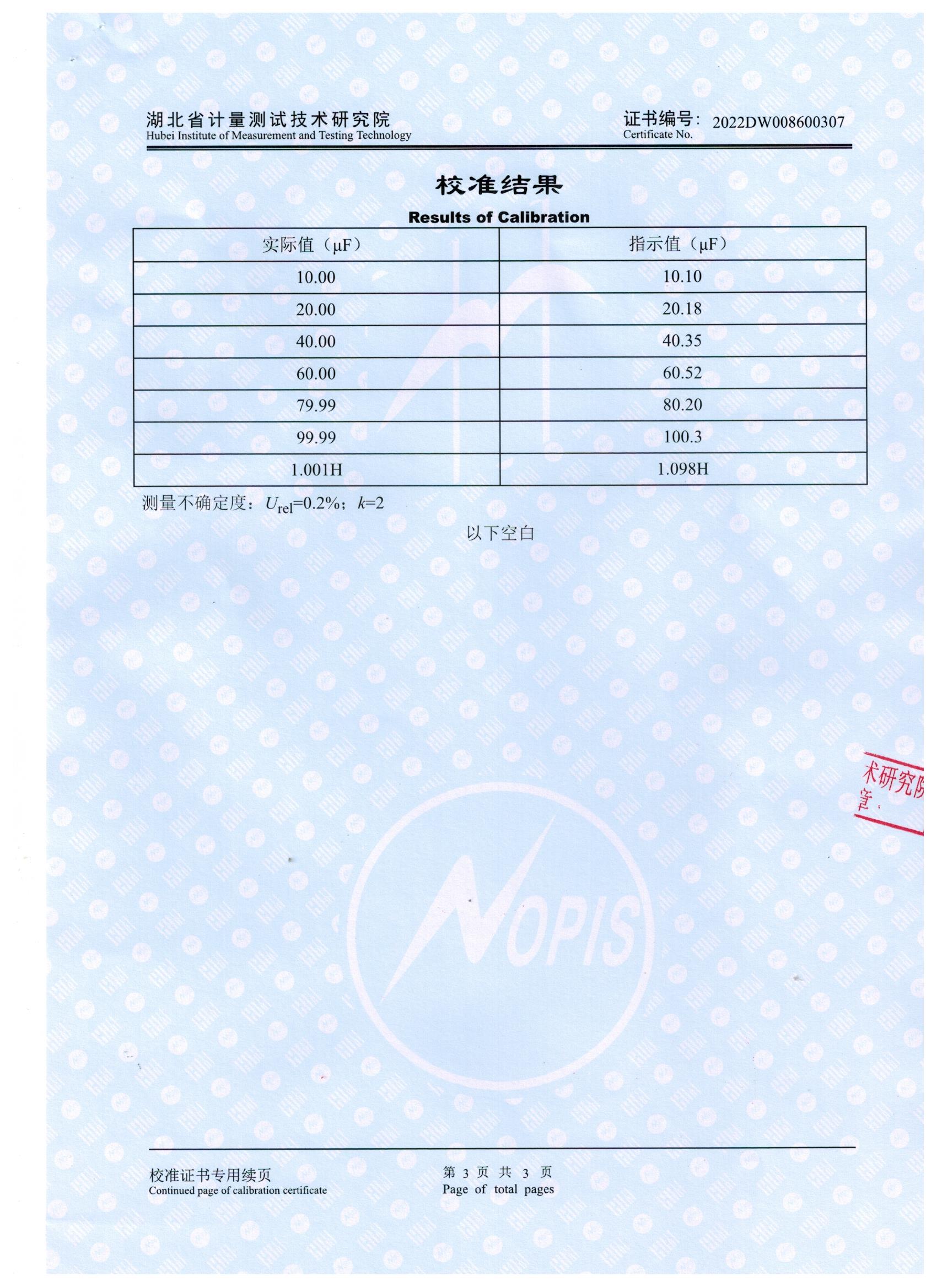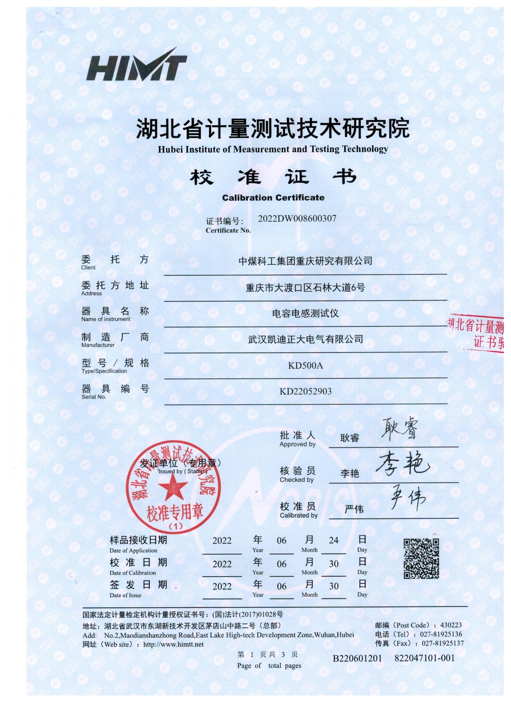 KD500A電容電感測試儀榮獲湖北省計量測試技術研究院校準證書