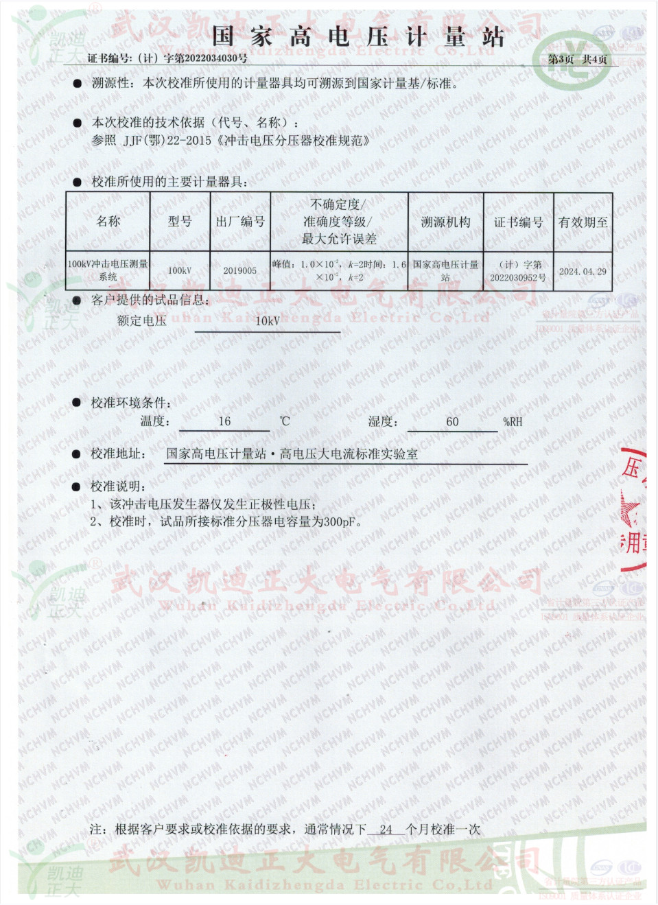 KDLJ-30雷電沖擊電壓發生裝置獲得國家高電壓計量站(武高所)校準證書(計)字第2022034030號,校準依據參照JJF(鄂)22-2015檢定合格,符合標準。10kV沖擊電壓發生裝置用于充電樁,新能源汽車,太陽能,低壓成套,低壓電器,高低壓開關等的檢測雷電沖擊試驗。