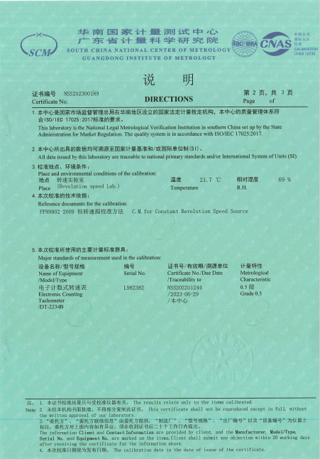 恒速器(恒轉速源)獲廣東計量科學研究院校準證書